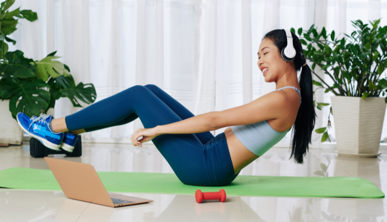 - Throughout the workout, keep your shoulders down and your neck relaxed.